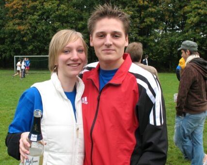 Das Kurscheidt-Pärchen feiert die Meisterschaft 2007 mit einem Fläschchen Sekt