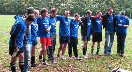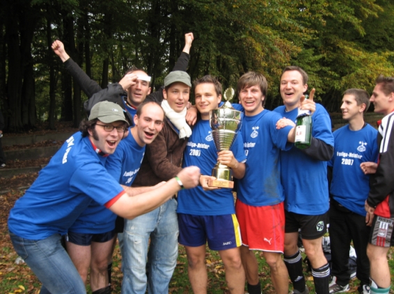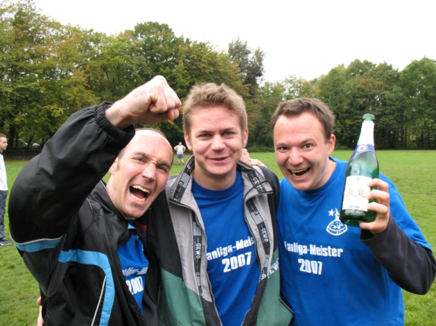 Onions - Alsters 5:0 (Wertungssieg) Onions - Bennigsen 6:1 Onions - Mittelfeld 12:1 Schon der Auftakt ist meisterlich. Während die anderen Teams noch gar nicht so richtig in der neuen Saison angekommen sind, verbuchen die Zwiebeln erst einmal einen neuen Startrekord in der Fanliga. 9 Punkte und 23:2 Tore nach dem ersten Spieltag, das haben selbst damals die Wüstenfüchse nie geschafft. Onions - Maniacs 4:0 Onions - Players 2:1 Auch die nächsten beiden Gegner werden weggehauen. Es läuft alles nach Plan. Die Onions zelebrieren meisterlichen Offensivfußball! Onions - Rote Kurve 2:0 Onions - These 96 1:0 So ist es bei den Onions: Wenn die Gegner langsam stärker werden, dann steht die Abwehr. Die Zwiebeln sind jetzt in absoluter Hochform, spielen perfekten und hochkonzentrierten Weltklassefussball. 7 Spiele, 7 Siege. Das erste Viertel der Saison ist vorbei, und schon jetzt haben sich die Zwiebeln den Titel verdient. Onions - Fanprojekt 0:3 Onions - Pilspiraten 1:0 Mit einer Notelf müssen die Zwiebeln zum schweren Spiel gegen den amtierenden Doppelmeister - und verlieren verdient mit 0:3. Doch der anschließend hart erkämpfte 1:0-Erfolg hält die Torfabrik auf Meisterkurs. Onions - Barfuß Jerusalem 1:3 Onions - Red Devils 1:1 Onions - Hannover 07 1:0 Die (einzige) kritische Phase der Saison hat begonnen, die Zwiebeln spielen in diesem Saisonabschnitt nicht clever, machen zu viele Fehler. Gegen das Mittelfeldteam von Barfuß Jerusalem gibt es eine Rote Karte und ein 1:3 nach 1:0-Führung: Schwach! Nur noch Platz 4!Auch gegen die Devils werden erst wieder ein Spieler mit einer Roten Karte und dann erneut Punkte verloren. Und man muss zugeben: Besser als der Fünftplatzierte waren die Zwiebeln auch einfach nicht. Doch dann der Befreiungsschlag: Mit 1:0 wird der zuvor ungeschlagene Spitzenreiter Hannover 07 geschlagen. Damit halten die Zwiebeln Tuchfühlung zu den Spitzenkandidaten. Ist die Krise vorbei? Onions - Kanalkicker 4:0 Onions - Dragon Fire 1:3 Nein, die Krise ist nicht vorbei. Das 4:0 gegen den Tabellenletzten kann darüber nicht hinwegtäuschen. Und gegen den Sechsten, Red Dragon Fire, gibt es schon den dritten Platzverweis und den vierten Punktverlust in kurzer Zeit. Allerdings unter tatkräftiger Mithilfe des Schiedsrichters, der auch schon die ersten (zum Teil fragwürdigen) Onions-Platzverweise gegeben hatte und auch in anderen Spielen mit merkwürdigen Entscheidungen aufgefallen war. Kein Wunder: Er bekommt vom Fanliga-Chef anschließend den Laufpass. Onions - Lehrte 4:1 Onions - Chaostruppe 3:1 Um es gleich vorwegzunehmen: Jetzt ist die Onions-Krise beendet. Sie werden nun aus den nächsten 14 Spielen 12 Siege holen und mit dieser eindrucksvollen Serie hochverdient den Meistertitel klarmachen. Zum Auftakt der Serie gibt es zwei, noch etwas mühsame Siege gegen heute eher schwach aufgelegte Lehrter Lost Boys und Pattenser Chaostruppler. Onions - Pilspiraten 5:0 (Wertungssieg) Onions - Mittelfeld 2:0 Onions - These 96 1:5 Hut ab vor Mittelfeld und These 96. Gegenüber den Hinspielen (12:1 und 1:0) haben sich beide Teams extrem verbessert. In einem Duell auf hohem Niveau holen sich die Zwiebeln gegen Mittelfeld nach der Pause meisterlich drei Punkte. Gegen die These sind die Zwiebeln vollkommen chancenlos. Kurzzeitig muss um die Meisterschaft wieder gezittert werden. Onions - Jerusalem 6:1 Onions - Hannover 07 2:1 Ganz starke Zwiebeln auf dem Weg zum Titel. Das 6:1 gegen chancenlose Jerusalemer ist eine Demonstration der Stärke des kommenden Meisters. Und Titelkonkurrent Hannover 07 kassiert im Spitzenspiel des Tages die zweite Saisonniederlage - erneut gegen die Red Onions. Onions - Maniacs 3:0 Onions - Bennigsen 2:2 Wer will die Zwiebeln noch stoppen? Vielleicht West Side Bennigsen. Die Jungs erkämpfen sich ein Remis und versetzen den Titelträumen einen erneuten kurzzeitigen Dämpfer. Das Derby gegen die Misburg Maniacs wird jedoch erneut klar gewonnen. Onions - Lehrte 2:0 Onions - Rote Kurve 4:1 Und die nächsten zwei Siege sind da, mühsam zwar, gegen die beiden Mannschaften aus dem unteren Tabellendrittel, aber Bayern München macht es auch nicht anders. Onions - Chaostruppe 3:2 Onions - Red Devils 1:0 Der erste Sieg am heutigen Tage ist ein Wackel-Sieg. Die ersatzgeschwächte Chaostruppe holt fast noch einen Punkt nach 1:3-Rückstand, scheitert aber am Pfosten. Deutlich besser wieder die Leistung gegen die starken Devils, wo drei ganz wichtige Meisterpunkte geholt werden: Auch eines der Spiele, wodurch sich die Onions den Titel wirklich verdient haben. Onions - Kanalkicker 3:0 Onions - Players 2:1 Gegen den Tabellenletzten gelingt ein wenig zauberhafter, aber erneut souveränder Sieg: Der fünfte in Folge, seit 9 Spielen ungeschlagen, davon 8 gewonnen. Der nächste Sieg und damit das Meisterstück folgt dann gegen die Hannover Players: Das hochverdiente Siegtor fällt erst in der Schlussminute fällt, Riesenjubel bei den Onions, wenngleich der Titel noch lange nicht feststeht. Onions - Fanprojekt 0:4 Bereits eine Woche vor dem Spiel gegen das Fanprojekt erfahren die Zwiebeln, dass sie Meister sind - denn als sie spielfrei hatten, hat die Konkurrenz auf ganzer Linie gepatzt! Sie konnte auf der Zielgeraden mit den ständigen Siegen der unbezwingbaren Onions einfach nicht mehr Schritt halten. Da fällt es auch nicht mehr ins Gewicht, dass sich die Onions am letzten Spieltag dann doch als nicht vollkommen unbezwingbar erweisen: Es gibt eine kräftige 0:4-Klatsche gegen das Fanprojekt. Aber: Selten war eine Niederlage gegen das Fanprojekt so uninteressant...